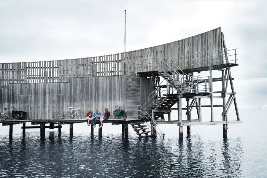Референсы рекреационных зон. (1) — Купальня на о. Каструп // бюро «White Arkitekter», «White Design A/S» // 2012 г. (2) — Вид терминала канатной дороги // 2017 г. (фото)