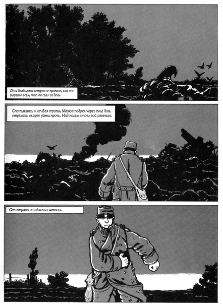 В комиксах о Первой мировой войне пустое пространство — это композиционный и нарративный элемент, который работает на создание эмоционального напряжения. Отсутствие визуального шума заставляет читателя прочувствовать те состояния, которые невозможно передать через действие: безвыходность и экзистенциальную пустоту.