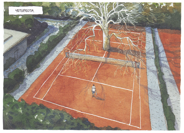 В финале «Однастории» Джипи применяет ритмический прием: он выстраивает целую последовательность пустых акварельных пейзажей, намеренно лишая повествование динамики и интриги. Эти кадры, не несущие прямого сюжетного развития, заставляют историю замедлиться перед полным окончанием истории, и это замедление ритма заставляет читателя перейти от восприятия событий к осмыслению их последствий.