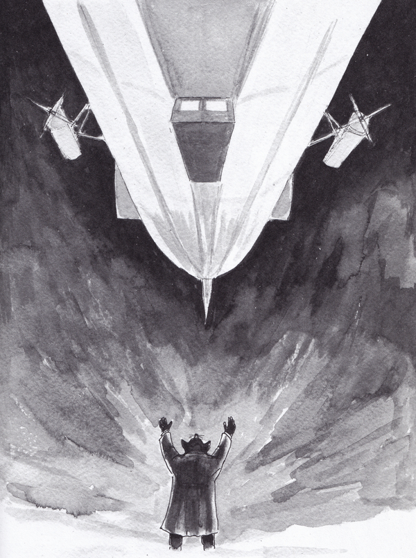 Для передачи угрозы со стороны техники используется ракурс, подчеркивающий ее подавляющее превосходство. Танки, дирижабли и артиллерийские орудия изображаются с крайне низкой точки обзора, так что они заполняют собой все небо, нависая над фигурками солдат в нижней части кадра.