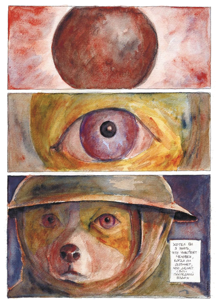 При изображении активных боевых действий авторы отказываются от предсказуемой кадровой сетки и статики, чтобы визуализировать внезапность, хаос и сенсорную перегрузку, характерные для атаки. Задача автора в эти моменты — не рассказать о событии, а смоделировать его переживание, показать панику и дезориентацию.