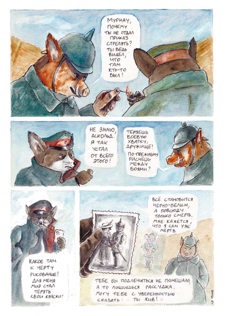 Уникальность комикса как медиума — в его способности визуализировать время через пространство кадров. В комиксах о Первой мировой войне организация кадров становится инструментом передачи переживаний, связанных с участием в военных действиях.