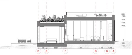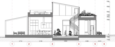 Здесь же зимний сад не только выполняет функции формообразующего элемента, стержня, вокруг которого собираются жилые помещения, но и становится неким связующим звеном между зданием и окружающей средой. Именно благодаря саду дом открывается окружающей среде, а природа, в свою очередь, проникает внутрь дома, занимая, значительную часть внутреннего пространства, постепенно захватывая различные поверхности: как вертикальные, так и горизонтальные.