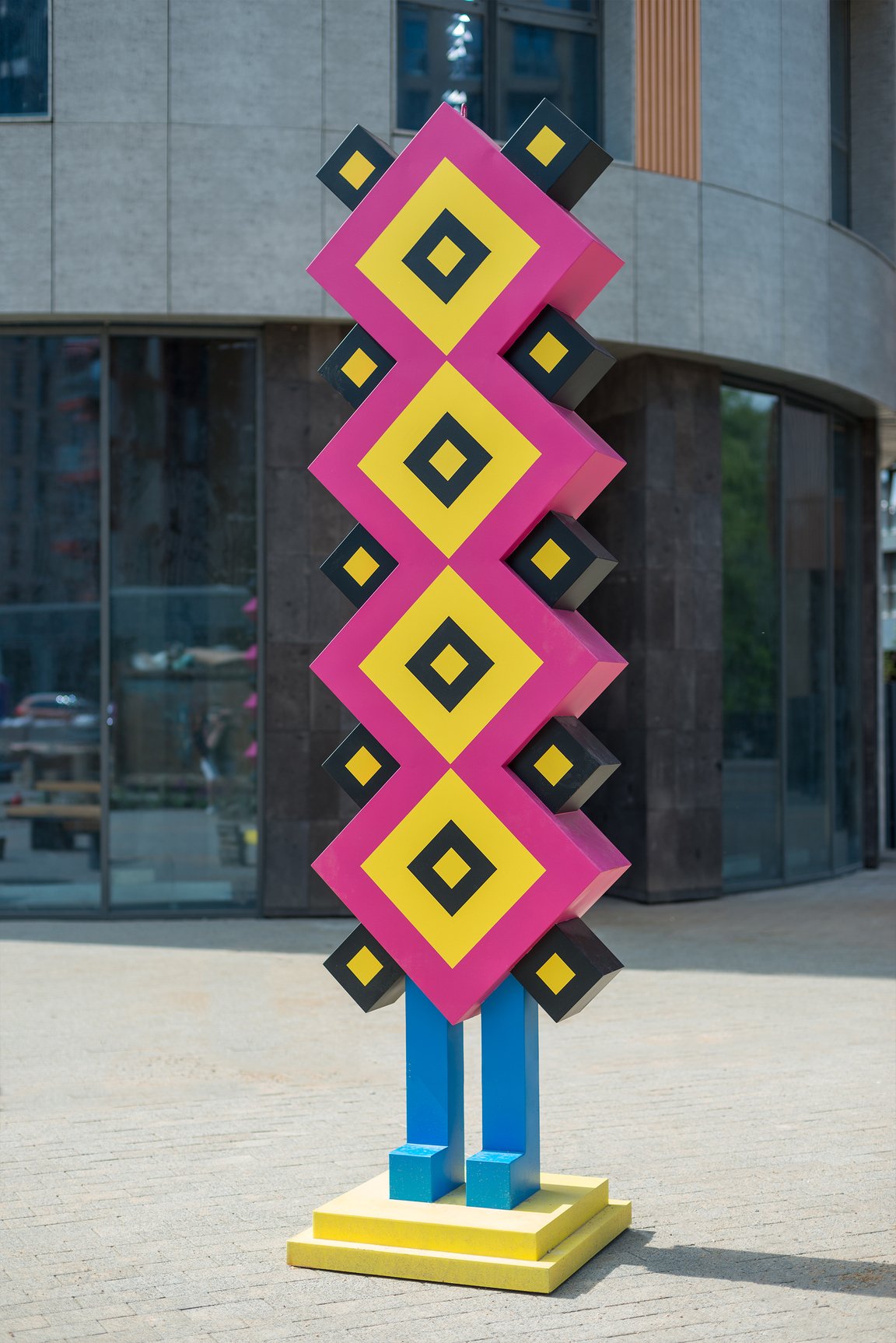 Ко дню рождения Владимира Маяковского, на территории Библиотеки им. Маяковского в рамках фестиваля «НАТЕ!» был выполнен паблик-арт объект. Площадка двора библиотеки формой напоминает треугольник, отлично подходящий для тройной инсталляции по периметру. За основу концепции взята известная история про кольцо-печатку, подаренную поэтом Лиле Брик, на которой по кругу располагались её инициалы. Монограмма Л. Ю. Б. превращалась в бесконечное «люблю». Так был создан паблик-арт объект, где можно бесконечно читать «люблю» стоя посредине и поворачиваясь.
