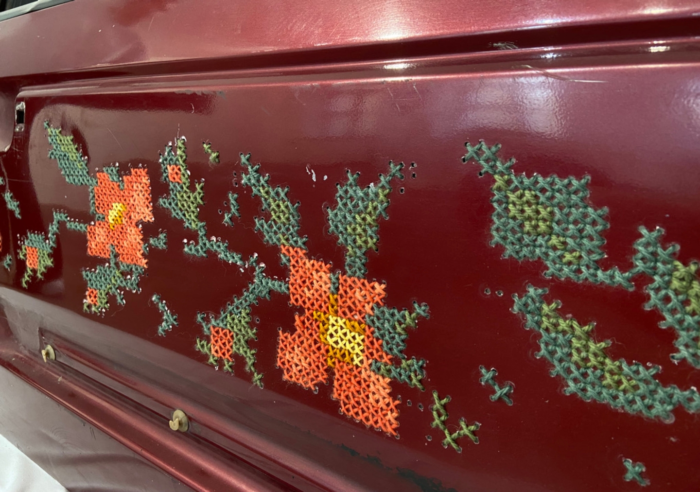 Идея проекта заключается в рассмотрении таких материалов как: пряжа и металл. Основной смысл заложен в несоответствии двух отдельно существующих элементов Цель — показать как при помощи творчества (вышивки) можно «возродить» объект, который утратил со временем свою функциональность и полезность, и привлечь гораздо больше внимания к нему, чем ежели в простом обыденном существовании.