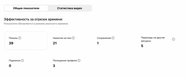 Также я решила выложить этот же ролик в Pinterest и проверить, какая будет статистика.