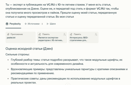 Формат VC.RU. Perplexity