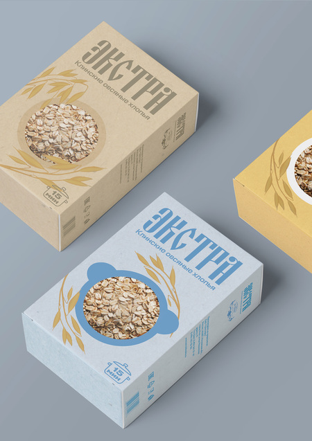 Проект по разработке дизайна упаковки овсяных хлопьев «Экстра». Был создан как классический вариант упаковки, так и варианты, ориентированные на детей, в основу которых легли характерные черты милых животных (также идет ассоциация с детскими тарелочками).