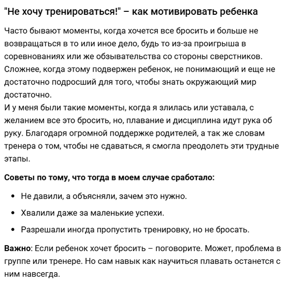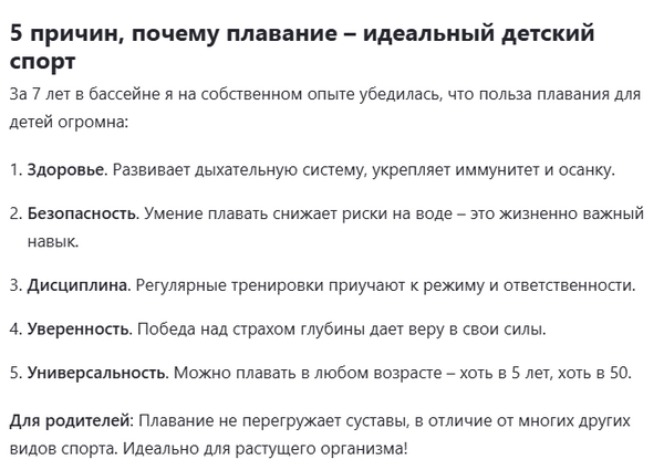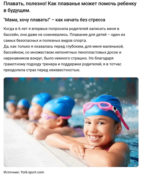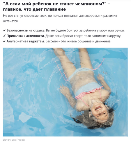 Тема: в данном модуле мы должны были сделать задания на тему продвижения личного бренда или рассказа о своем личном опыте. Я решила взять за основу свой личный опыт плавания на протяжении 7 лет, что бы рассказать родителям о том, как это не страшно и даже полезно для их детей. Целью создания именно такого рода контента является собственное продвижение, к примеру как инструктора по плаванию или будущего тренера/наставника.