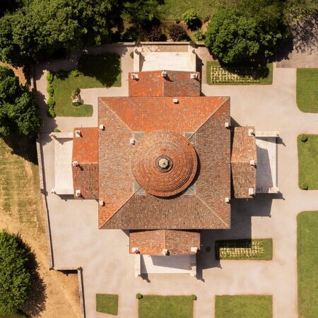 Павловский дворец — вид сверху, арх. Ч. Камерон, 80-е года XVIII века / Вилла Ротонда — вид сверху, арх. А. Палладио, 1567–1605 гг.