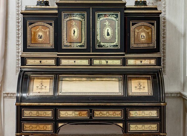 Бюро секретер из черного дерева со вставками в технике «эгломизе», мастерская И.Отта, Фрейлинская.