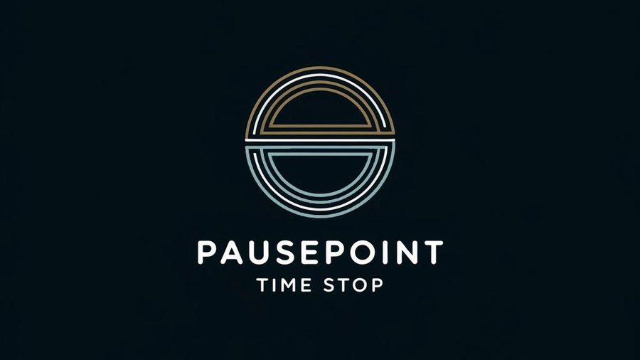 Make a minimalistic logo for the PausePoint time stop brand, using thin lines of black, white, blue colors, with the addition of gold, the logo should be simple and credible without being gaudy.
