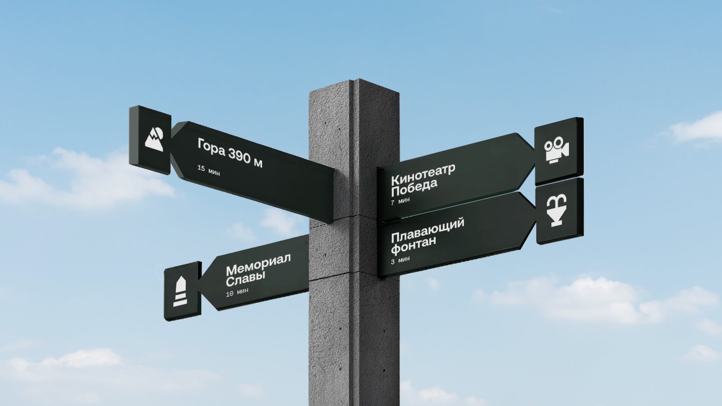 В основе знака лежит обозначение меди на карте полезных ископаемых. Внутри прямоугольника появляется буква «К» — первая буква названия города.