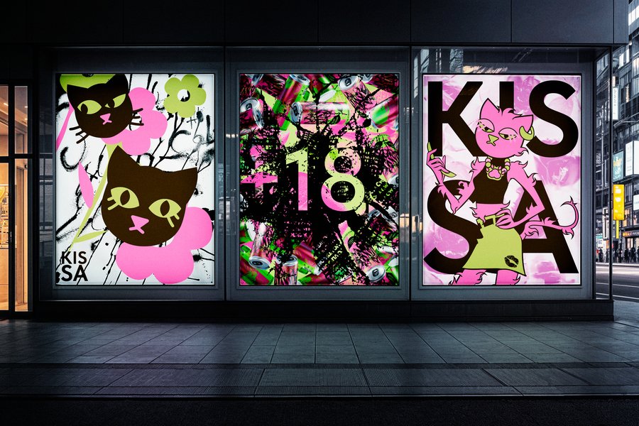 KISSA — бренд пивных напитков для гламурных кошечек. пиво классически ассоциируется с мужским напитком; однако это лёгкий напиток, содержащий эстроген, и многие девушки не против иногда побаловать себя этим продуктом. нам захотелось создать бренд пива в гиперженственной эстетике, для женщин, для женского взгляда, то, чего пока нет на российском рынке.