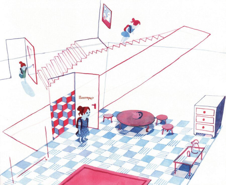 Не только Пантера меняет свою форму и вид. По мере развития сюжета комната Кристины и коридоры её дома также «скручиваются», искажая перспективу и заставляя читателя почувствовать дискомфорт в необходимых для этого сценах. Этот сложный визуальный прием показывает, что под влиянием находится не только Кристина, но и всё её окружение, её реальность.