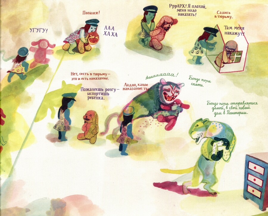 Заканчивается история тем, что на день рождения девочки Пантера приглашает своих сомнительных друзей. Они устраивают «чаепитие», на котором дружелюбная, на первый взгляд, атмосфера сменяется странными играми и ощущением хаоса. В итоге эти «друзья» скручивают саму Пантеру и накачивают Кристину веселящим газом. После этого случая девочка просыпается с ощущением: «Меня тошнит, мне холодно, и по мне как будто кто-то ползает». Она больше не хочет слушать истории Пантеры, не хочет с ним играть и разговаривать. В конце концов, он уходит обратно в свою страну.