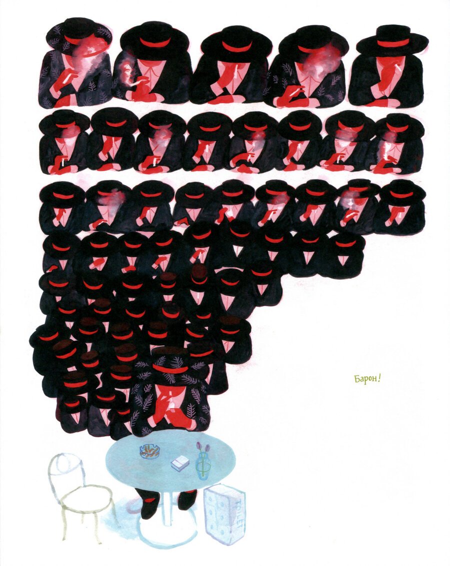 Разворот ресторана, на котором можно увидеть троих главных героев