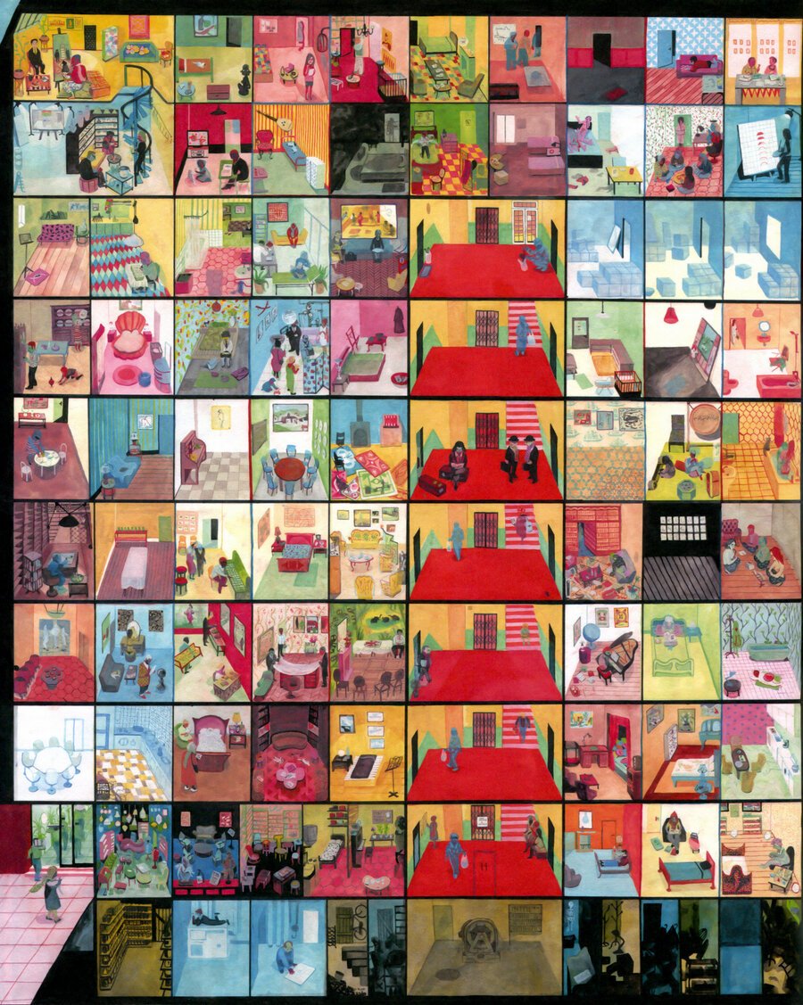 С помощью своеобразных чертежей зданий и комнат читатель получает возможность подсмотреть за жизнью города не только на улицах, но и внутри помещений, в привычной для их обитателей обстановке. Этот приём создаёт особое погружение, поскольку, пока мы следим за героями, город продолжает жить своей собственной, независимой жизнью.