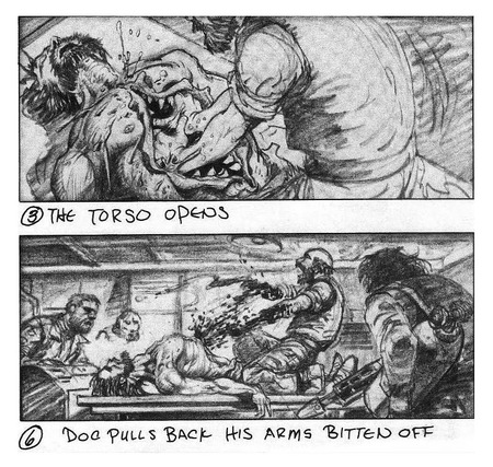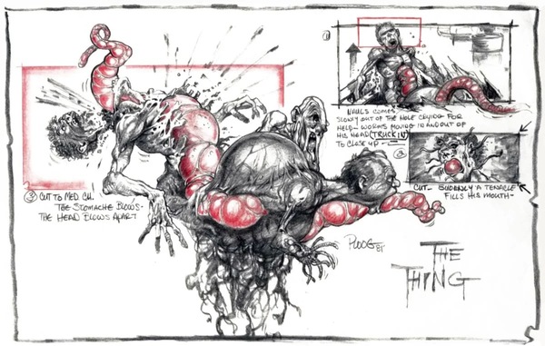 Раскадровки художника и иллюстратора Майка Плуга // Сцена из фильма «Нечто» (1982)