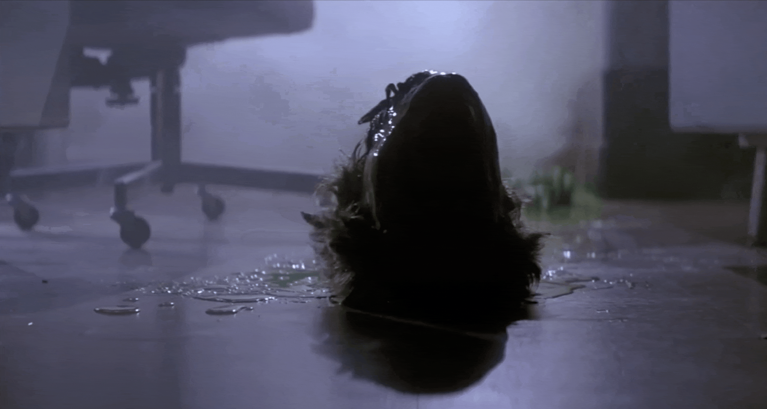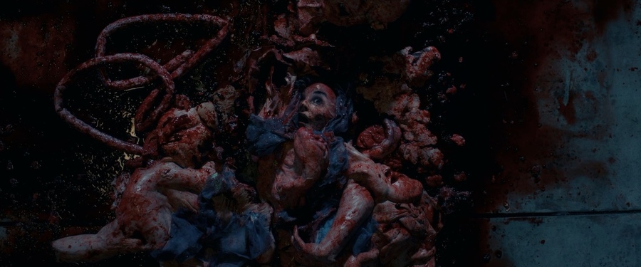 Финальные кадры показывают нам последнюю мутацию героини. Большинство зрителей в театре были каскадёрами, потому что находиться под таким напором искусственной крови было довольно опасно. Устройство было очень мощным. Под синим платьем построили установку на колёсах, чтобы было проще нести вес. Но в первый раз, когда включили подачу крови, из-за этих колёс и всего прочего, человека очень сильно отбросило назад. Поскольку был только один костюм, пришлось разрезать его по техническим причинам, а потом сшивать и склеивать обратно. На него распыляли водоотталкивающий спрей, чтобы избежать эффекта губки, который даёт пенолатекс. Он становился розовым, так что приходилось перекрашивать его и сушить всю ночь.