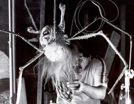 Для создания отделившейся от тела паукообразной головы Боттину потребовалось также провести кропотливую работу: актер, с лица которого сняли слепок для создания чудовища, провел 10 дней с Боттином, чтобы тот смог создать точную и реалистичную модель головы, в которой затем были размещены гидравлические челюсти, приводящие рот в движение