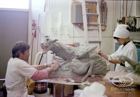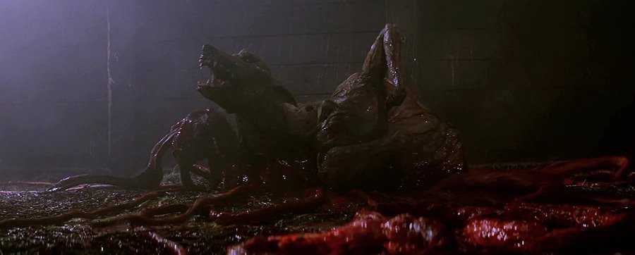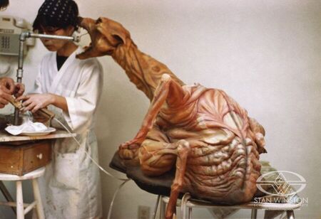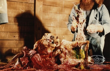 Было создано изображение одного из специалистов студии Лэнса Андерсона с поднятой рукой, по которому он и его коллеги-художники Джеймс Кейджел и Митико Тагава вылепили собаку-монстра из пластилиновой глины на масляной основе. Затем специалисты приступили к созданию собаки из вспененного латекса. В завершении у монстра уже были радиоуправляемые глаза, он мог рычать, двигать лапами, которые приводились в движение специальным кабелем, расположенным внизу. Однако для более точных и правдоподобных движений кукле все еще было необходимо ручное управление. Андерсон управлял пастью монстра через засунутую внутрь руку, позже он признался, что по его спине и шее постоянно текла слизь