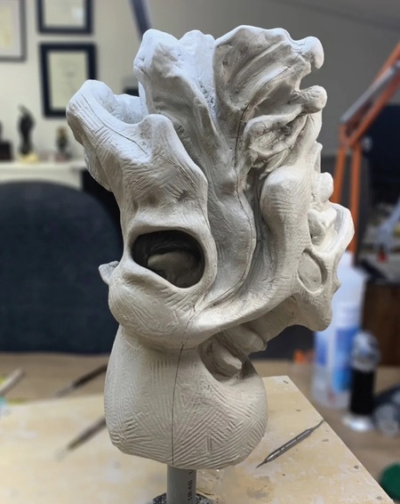 Художники начали с макетов. Даже для сцены рождения, где спина скручивается и расщепляется, они построили небольшие силиконовые макеты, чтобы потом анимировать их, и понять техническую точку зрения, показать на утверждение Корали, и увидеть, согласна ли она с этим, с направлением и всем прочим. Изначально взялись работать над сценой рождения: фальшивая спина, накладки, так как еще не было ни актрис, ни слепков, ни сканов