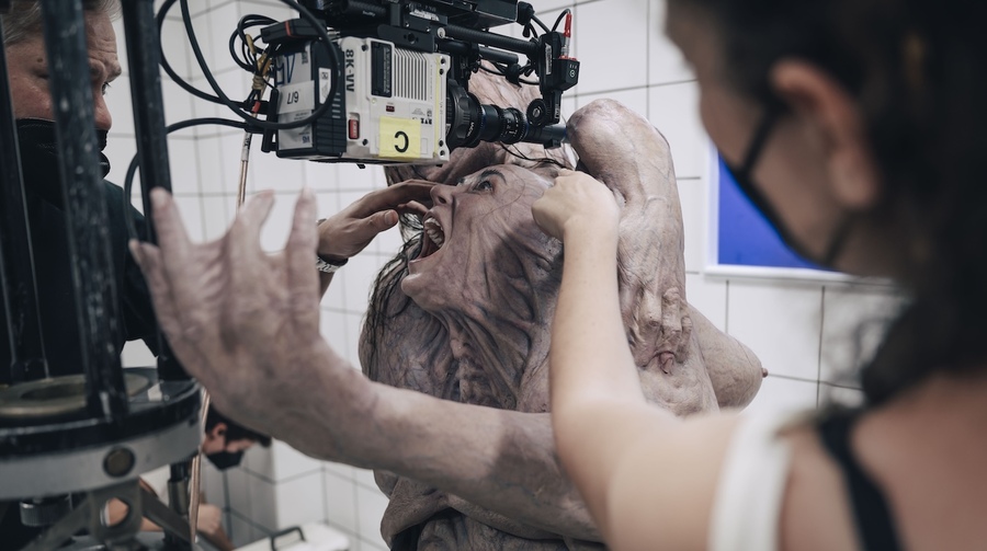 Процесс съёмки сцены из фильма «Субстанция» (2024)