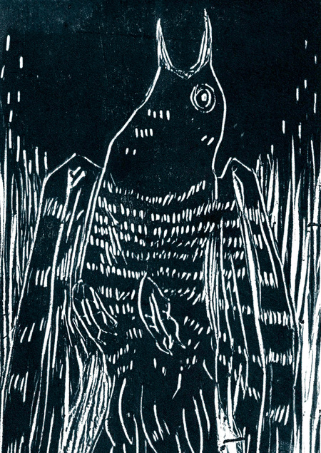 В культурах разных народов мира существуют поверья, суеверия и сказки о птицах. Идея для серии линогравюр родилась из фразы «кукушка-кукушка, сколько мне жить осталось?». Я решила сделать несколько иллюстраций, посвященных птицам, якобы приносящим смерть тем или иным образом.