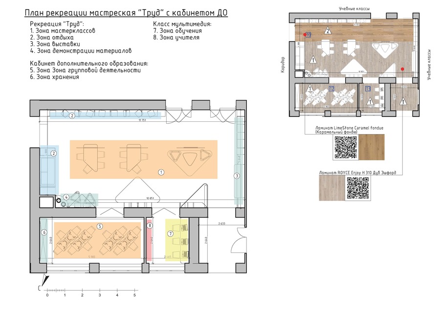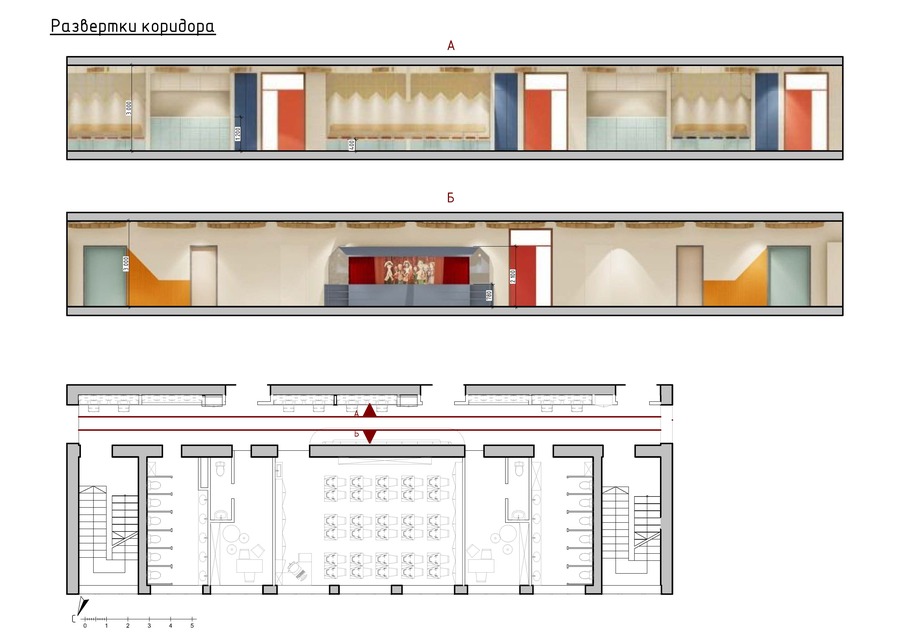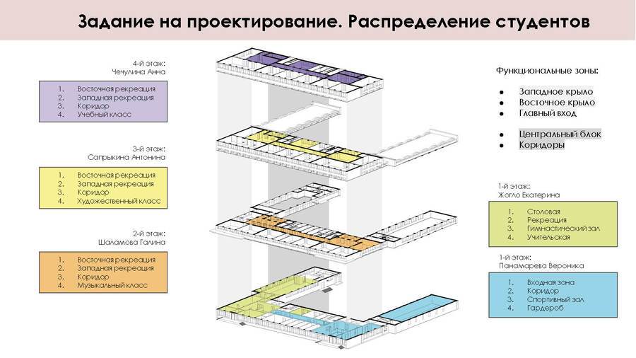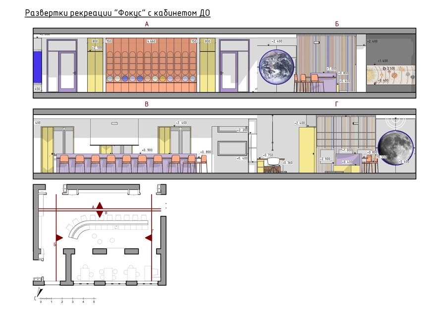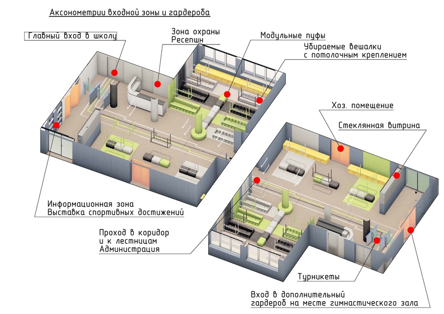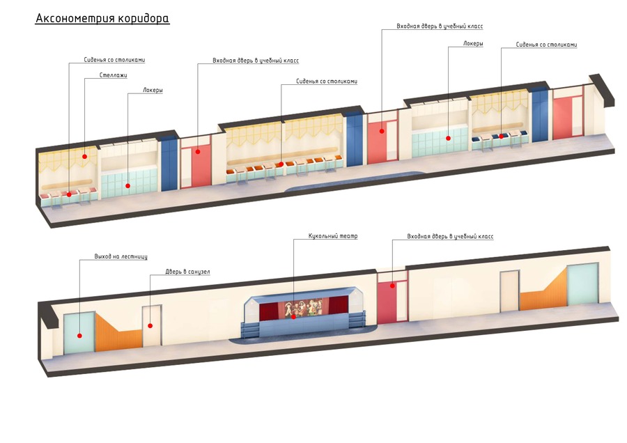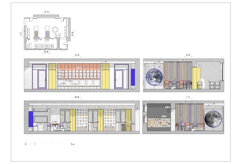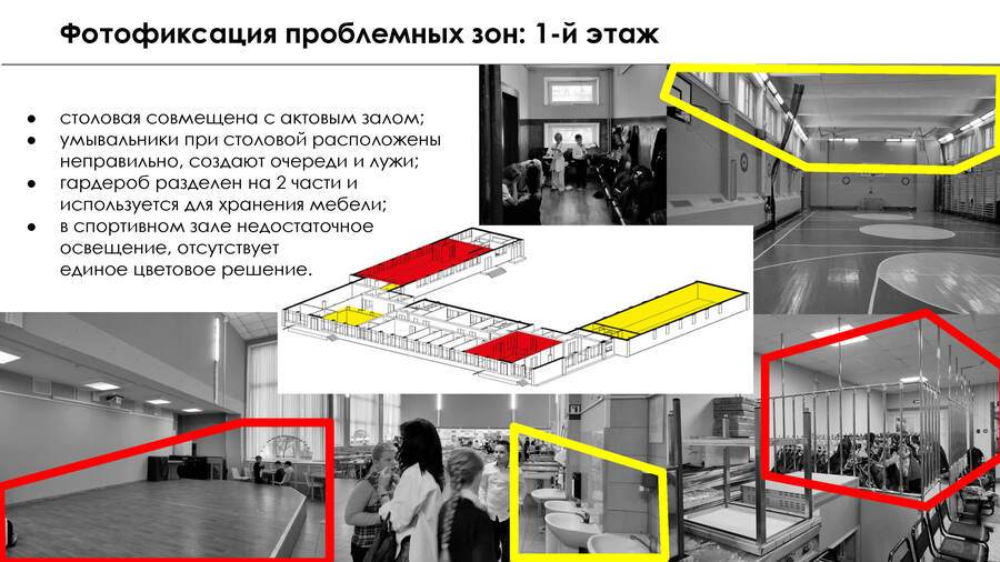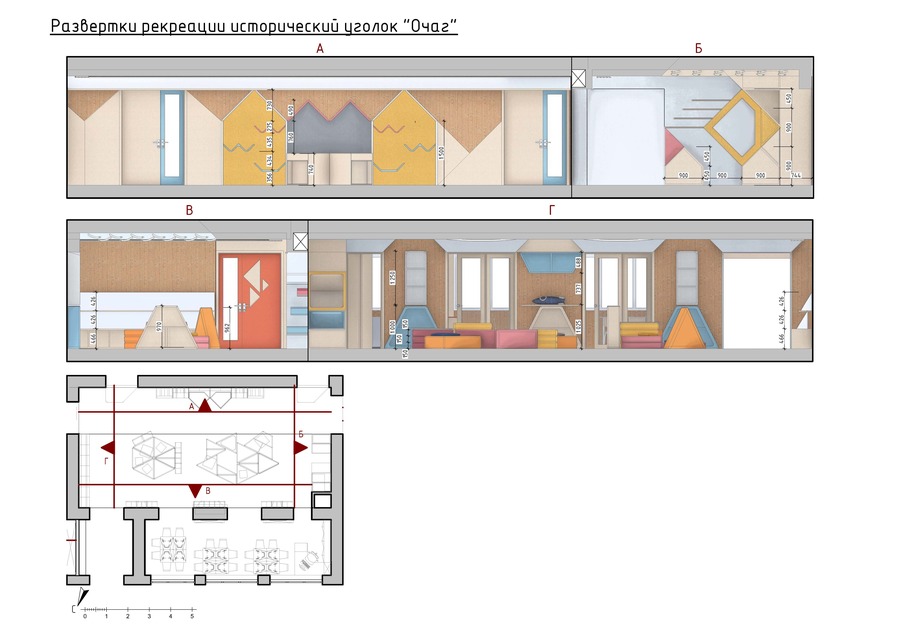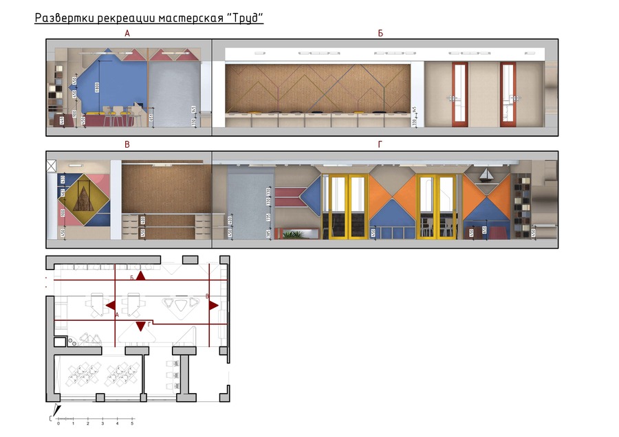ГБОУ СОШ № 533 Первый логотип школы в виде книги с листом послужил источником вдохновения. Дети — это «чистые листы», которые открыты познанию окружающего мира. В основу концепции вошли стихии природы и обрели каждая свою форму в зависимости от расположения на этаже. Первый этаж символизирует начало, истоки, его элементы — земля, дерево и вода. Все административные помещения были перенесены в коридор первого этажа. Были добавлены акценты в виде сидений и настенное панно «Начало» в виде дерева, предназначенное для размещения фотографий и других самых важных моментов из жизни школы. Это символ связи между поколениями, и оно отлично дополняет административную функцию коридора. Символика второго этажа — огонь как источник тепла, очаг, вокруг которого собирается вся семья. Концепция интерьера третьего этажа символизирует свободу познания и творчества. Рекреация «Остров» погружает учеников в атмосферу сказки, а «Знание» представляет собой мини-библиотеку. Символика 4-го этажа — круг, космос. Рекреация «Фокус» представляет собой зону для просмотра мультфильмов, а «Взлет» является зоной активных игр. Лобановым Е.Ю. и Шамановой С. А. также были разработаны пристройка и инфографика.
