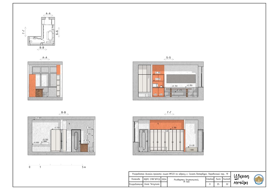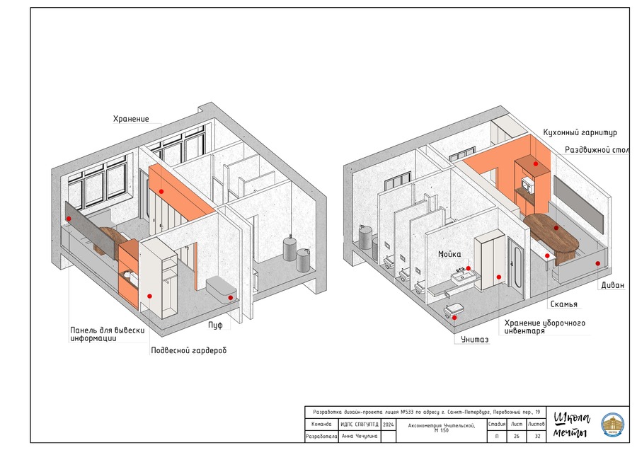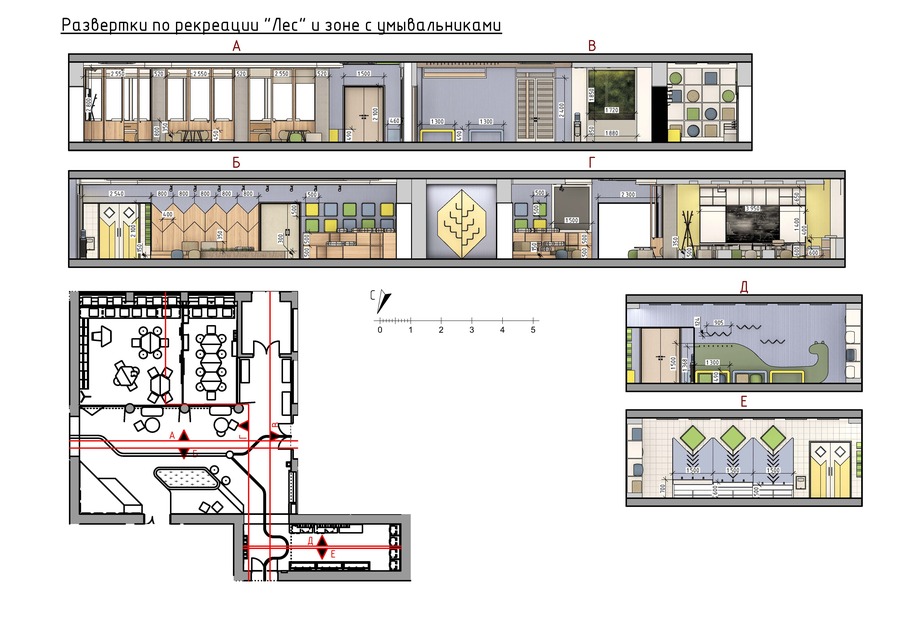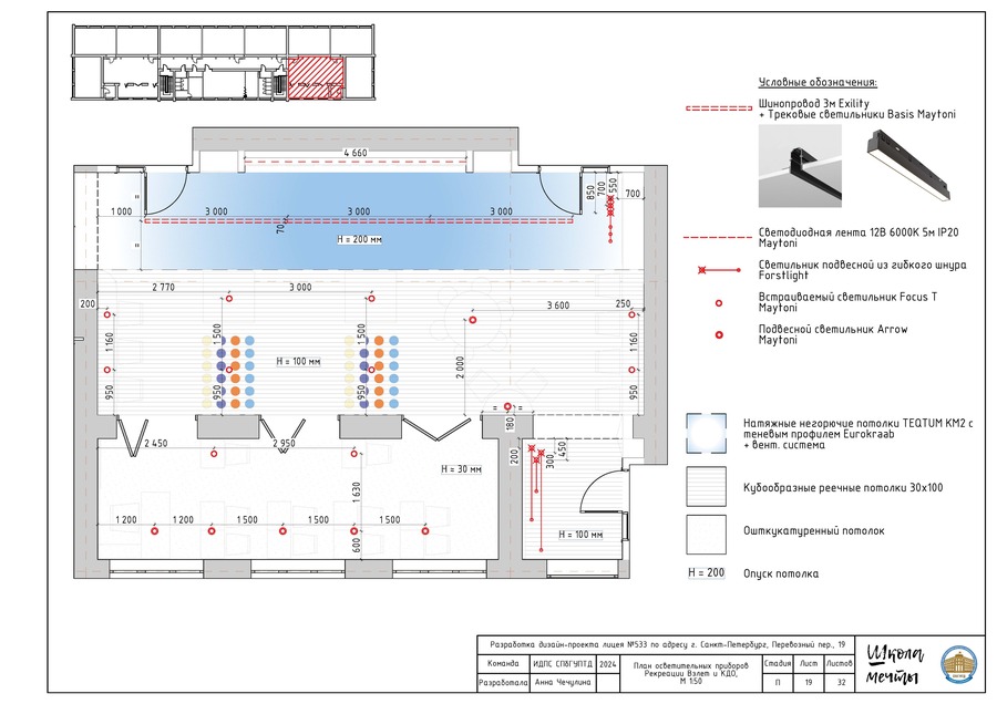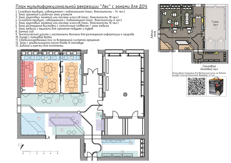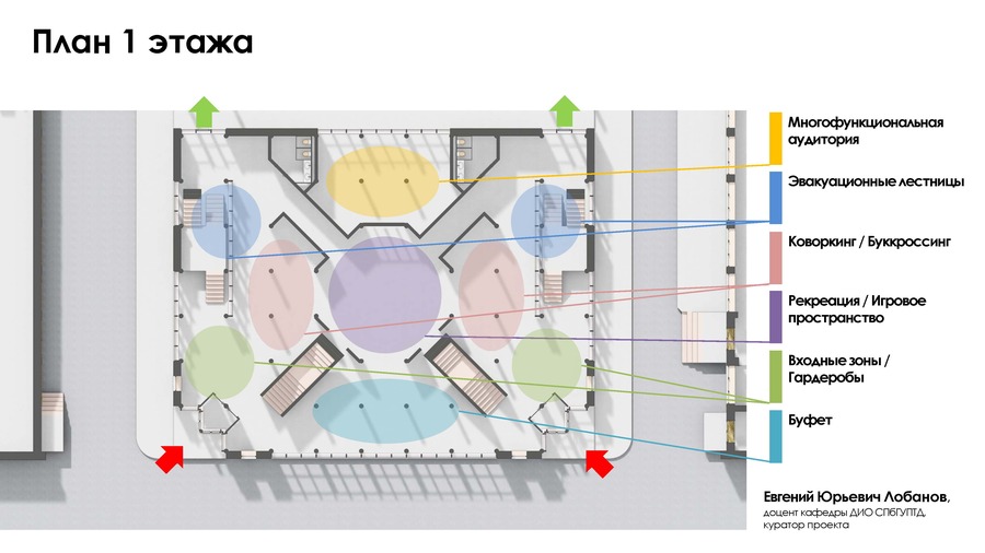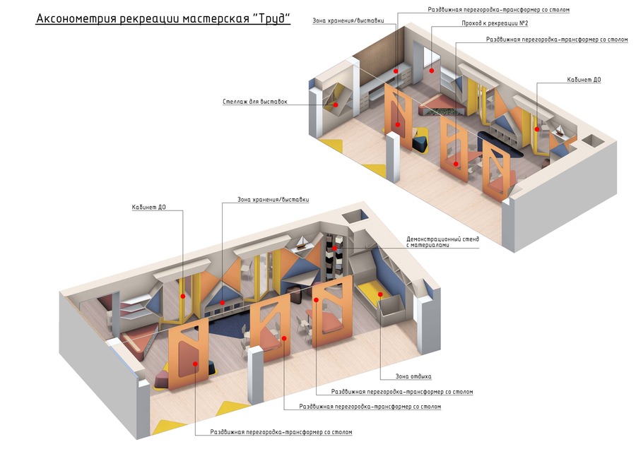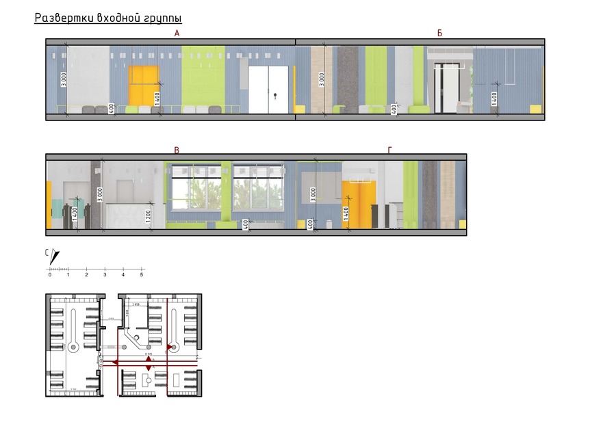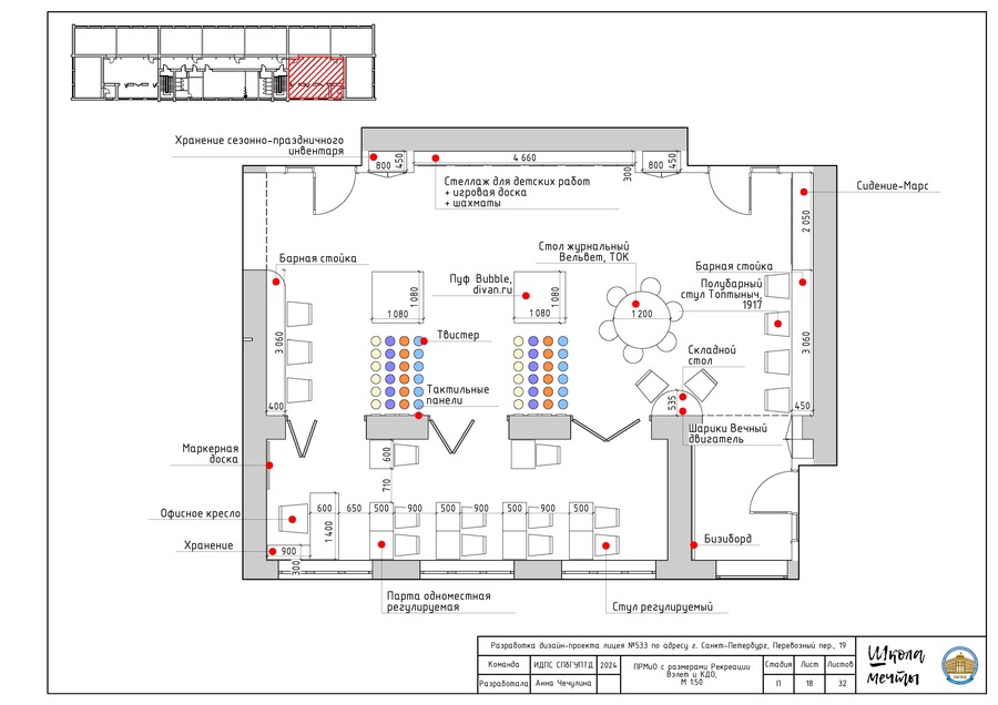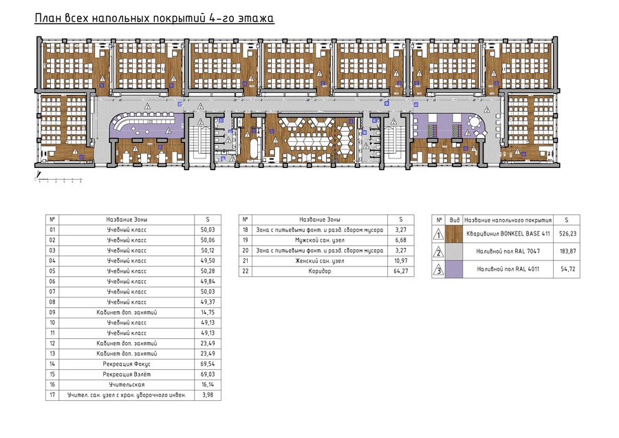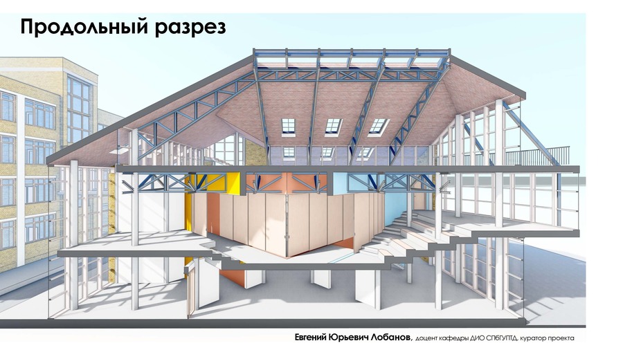 ГБОУ СОШ № 533 Первый логотип школы в виде книги с листом послужил источником вдохновения. Дети — это «чистые листы», которые открыты познанию окружающего мира. В основу концепции вошли стихии природы и обрели каждая свою форму в зависимости от расположения на этаже. Первый этаж символизирует начало, истоки, его элементы — земля, дерево и вода. Все административные помещения были перенесены в коридор первого этажа. Были добавлены акценты в виде сидений и настенное панно «Начало» в виде дерева, предназначенное для размещения фотографий и других самых важных моментов из жизни школы. Это символ связи между поколениями, и оно отлично дополняет административную функцию коридора. Символика второго этажа — огонь как источник тепла, очаг, вокруг которого собирается вся семья. Концепция интерьера третьего этажа символизирует свободу познания и творчества. Рекреация «Остров» погружает учеников в атмосферу сказки, а «Знание» представляет собой мини-библиотеку. Символика 4-го этажа — круг, космос. Рекреация «Фокус» представляет собой зону для просмотра мультфильмов, а «Взлет» является зоной активных игр. Лобановым Е.Ю. и Шамановой С. А. также были разработаны пристройка и инфографика.