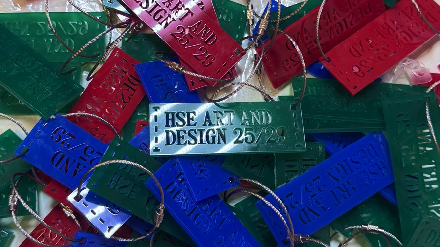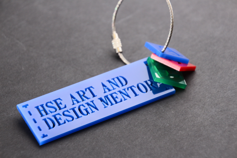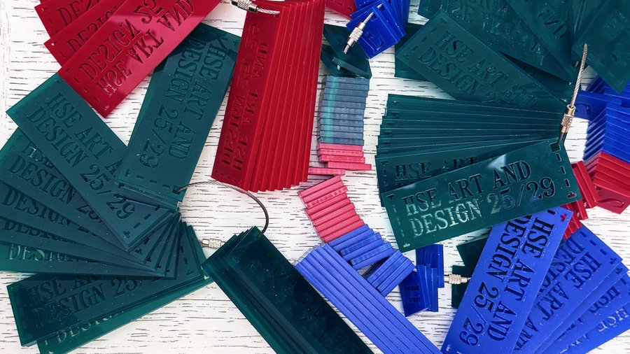 Дизайн брелков непосредственно связан с айдентикой, разработанной менторами Школы Дизайна СПб, а также отсылает к дизайну мерча менторов.