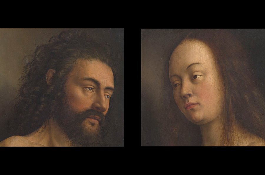 Ян ван Эйк, Гентский Алтарь, Адам, 1432 / Ян ван Эйк, Гентский Алтарь, Ева, 1432 (Фрагменты) http://closertovaneyck.be/ghentaltarpiece/#home/sub=open& vis& bt