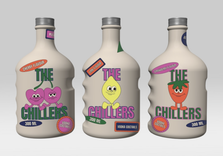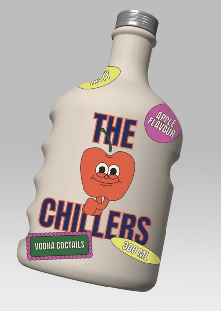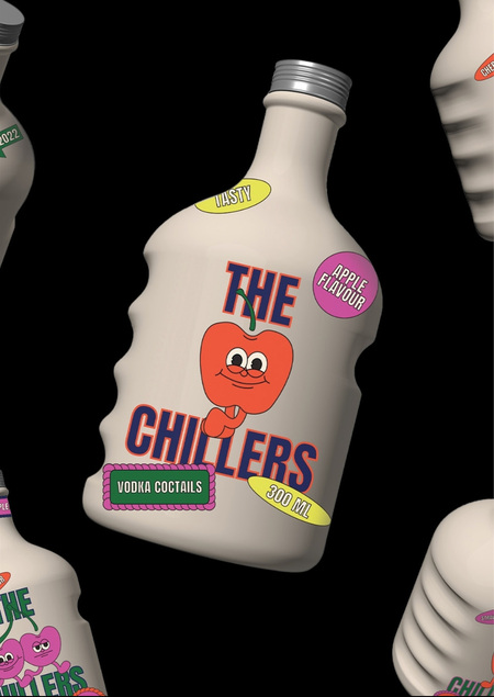 The packaging of The Chillers is treated as a full-fledged communication medium rather than merely a container for the product. The non-standard bottle shape with a comfortable grip emphasises the brand’s focus on user experience and physical interaction.