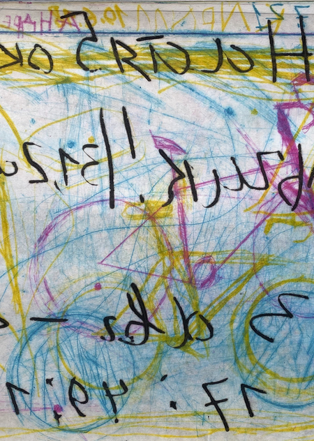 Серия «Почта SMS» 2025. Цветная сухая игла. Эта серия началась в 2006–2008 году, а точнее, она сложилась в 2001–2002 году и называлась «Почта», когда обычные письма перешли в SMS. Это близкие мне люди с которыми я вел разговор. Обычно, это зеркальный текст, личная переписка, напоминающая тексты Леонардо Да Винчи. Он делал это специально, а я в печатной графике, которая имеет зеркальное отображение. Это «новое продолжение» сложилось после приглашения участвовать в выставке, посвященной 100-летию работы «Монизм вселенной» К. Э. Циолковского и выставке, которая состоится летом 2025 в Калуге. Задание к художникам было сделать три работы в любой технике и в заданном формате. Получилась серия из четырех цветных досок, которые я накладывал в разных комбинациях (желтое, красное, синее и черное).