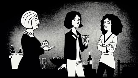 «Персеполис» (Маржан Сатрапи, 2007). Светские беседы взрослых женщин и резвящиеся девочки. Все героини одеты на западный манер: шаха еще не свергли.