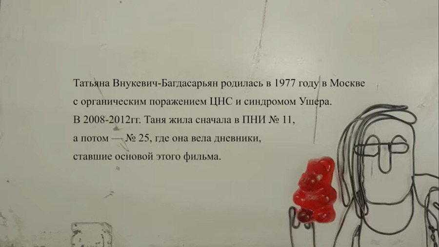 Сюжет документальной анимации «За забором» (Мария Коган-Лернер, 2020) основан на дневнике Татьяны Внукевич-Багдасарьян, жившей в психо-неврологическом диспансере.