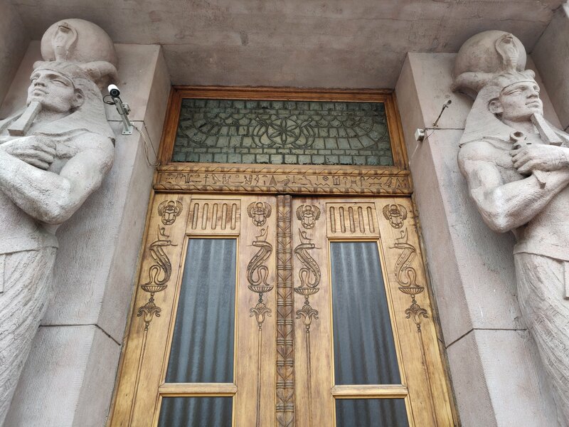 При этом Сонгайла работает не только с формой, но и с принципами египетской визуальной культуры. Архитектор использует иерархические композиции, фронтальность, симметрию, соединяя их с конструктивными решениями модерна: крупными окнами, плавной интеграцией рельефов в плоскость фасада, декоративностью, не нарушающей функциональности здания.