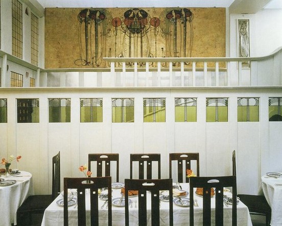 В панно «Угощение» Чарльз Ренни Макинтош использует египетскую эстетику не как «дословную» визуальную цитату. Это скорее ориентир для строгой утончённости и вертикальности, вполне отвечающих идеалам ар-нуво.
