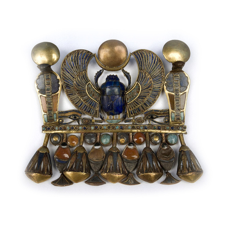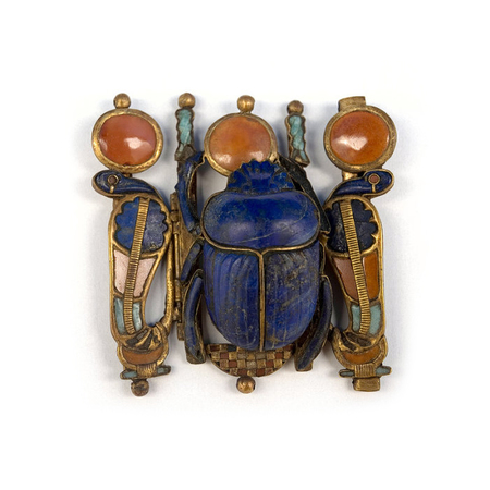 Золотая пряжка в виде скарабея со вставками драгоценных камней из гробницы Тутанхамона Кулон с тронным именем из гробницы Тутанхамона