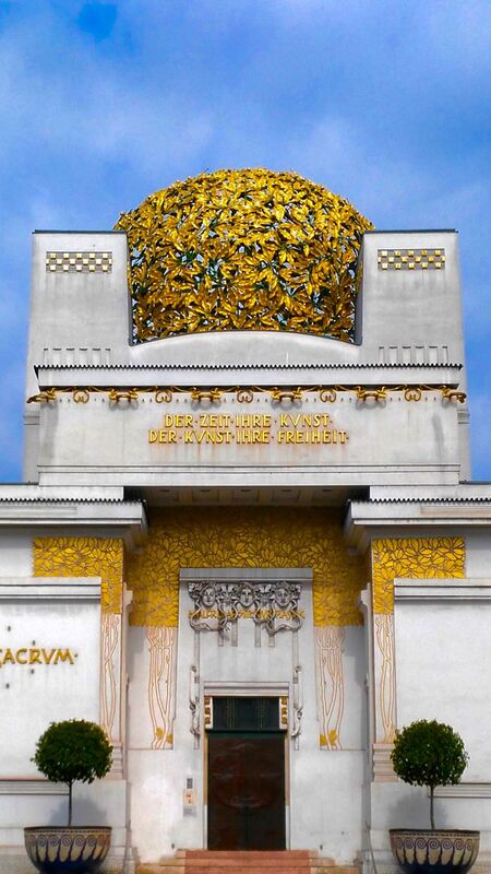 Ольбрих также использует декор, отвечающей, по крайней мере, духу древнеегипетской культуры. Знаменитый золотой купол-«корона» из лавровых листьев перекликается с солярной символикой, важной для империи фараонов. Декоративные фризы с растительными мотивами напоминают орнаменты из стилизованных лотосов — растений, которые часто выступали в ар-нуво универсальным знаком «архаической» красоты.