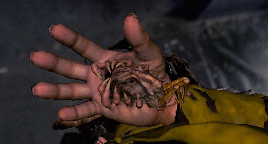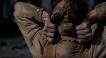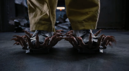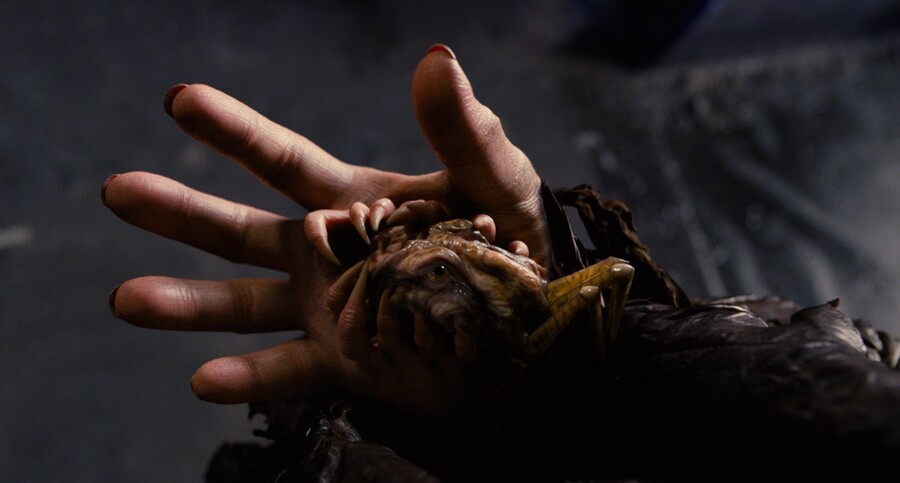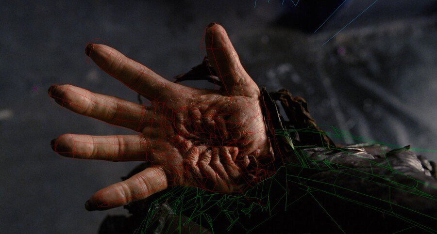 В конце фильма, когда пальцы на лице должны были двигаться, в цифровом виде часть лица актера заменили на цифровую версию, чтобы сделать анимацию. Таким образом, персонаж получился гибридом из практических эффектов и усиленным дополнением в виде цифровых.