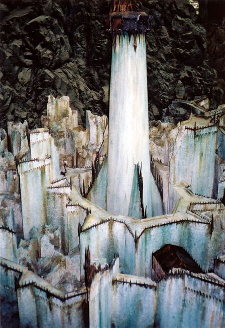 Для съёмок Минаса Моргула было создано два макета: один для съёмки с высоты, второй для крупных планов. Обе версии бигатур были оснащены светом с несколькими разными режимами, также макеты были покрыты УФ-краской. Такое техническое оснащение позволяло создать ряд определённых эффектов: зловещее сечение объекта при лунном свете и свет исходящий из-под земли.