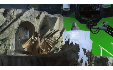 На дополнительных материалах от студии Weta FX можно увидеть, как крупные объекты, попадавшие на первый план в кадре, создавались вручную в реальности, в масштабе, соотносимом с актёрам. А пейзажи и дополнительные постройки в локациях накладывались на хромакей на этапе постпродашена.