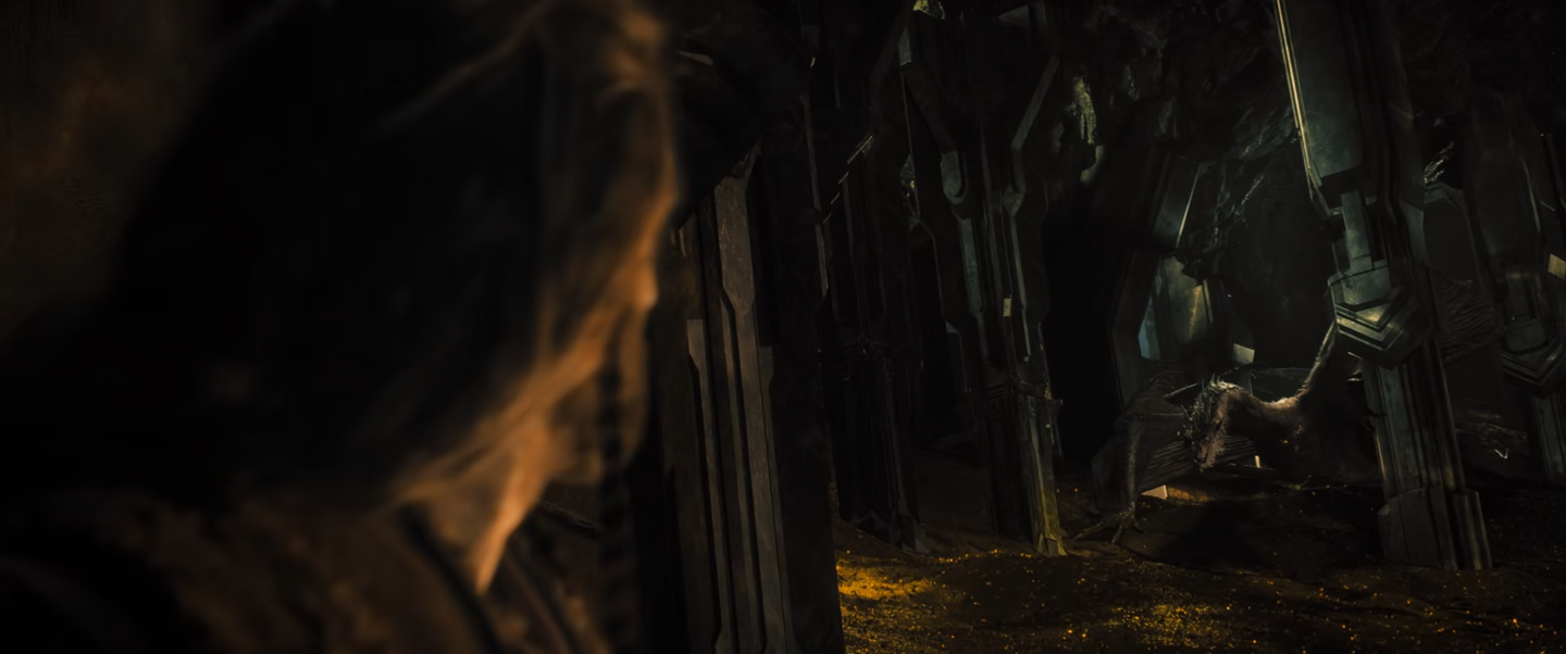 Из локации Залов Смауга был собран один фрагмент в павильоне. Всё остальное окружение было сконструировано с помощью компьютерных технологий. Выбор в сторону компьютерной графики был сделан в основном из-за того, что в пространстве появляется огромная фигура дракона. Чтобы одновременно сделать её подвижной и показать пространство залов, было необходимо собирать все фрагменты в одном формате (либо в реальности, либо на компьютере).