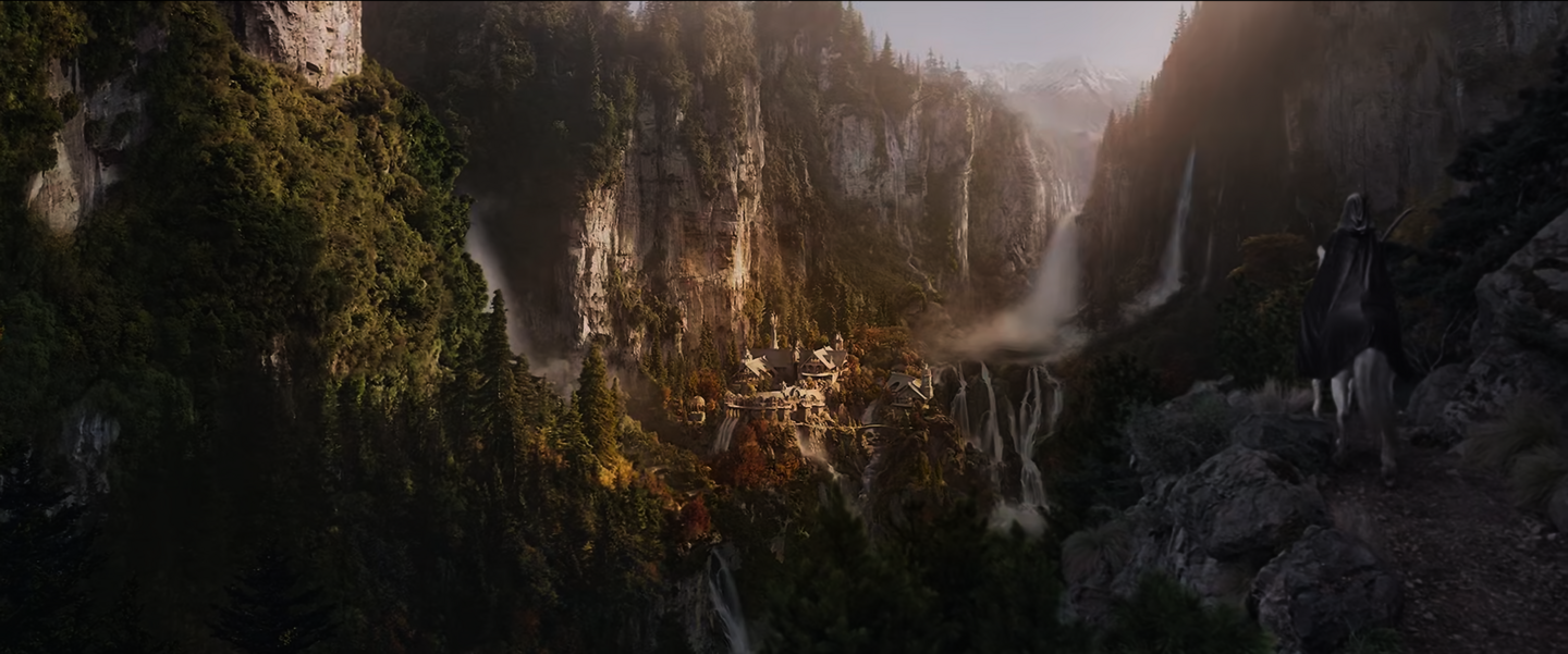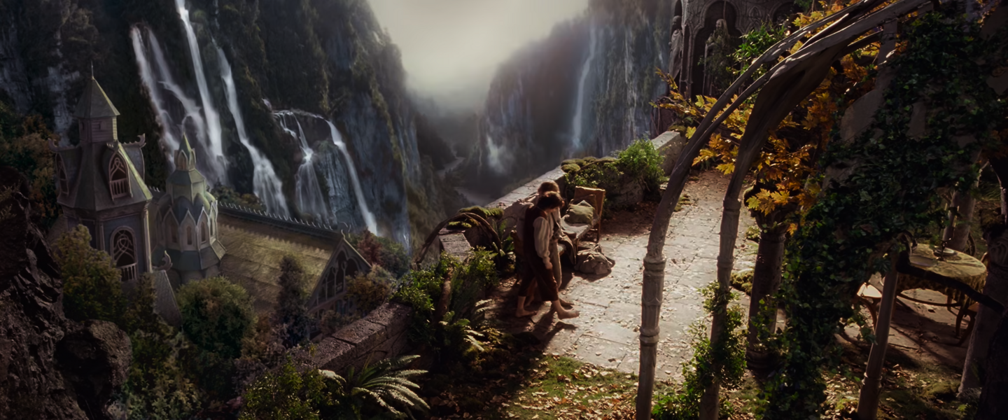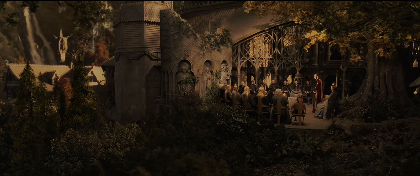 Макет Ривенделла был создан в масштабе 1:24 и полностью повторял рисунки Алана Ли. Технология бигатуры предполагала сборку и разборку некоторых её частей для удобства работы во время съёмок. Все нюансы построек и рельефа были воссозданы максимально детализировано, чтобы была возможность сделать более качественные облёты локации.
