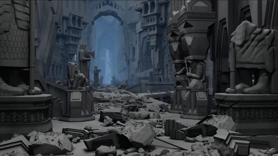 Однако, если тронный зал еще был удобен для выстраивания в 3D, так как стены и потолки находились далеко от героев и прямого взаимодействия не происходило, то коридор, ведущий к одному из таких же больших пространств необходимо было воссоздать в реальности.