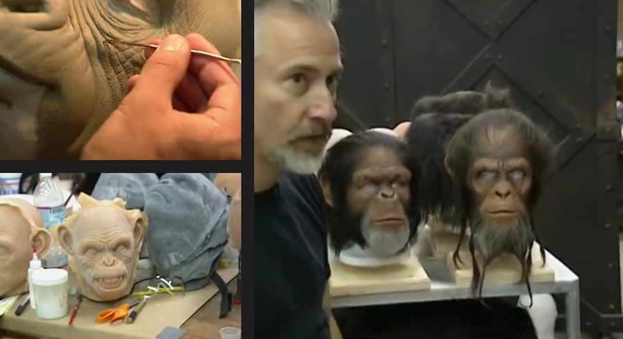 Процесс создания обезьян начинался со снятия гипсовых слепков с голов и лиц всех актеров. На основе этих точных копий скульпторы вручную лепили обезьяньи черты, чтобы создать индивидуальные макеты для каждого персонажа. С готовых макетов изготавливались формы, в которые заливалась специальная смесь на основе пенолатекса для отливки протезов. Для управления сотнями масок была даже внедрена система именных тегов, чтобы избежать путаницы. Таким образом, каждая обезьяна на экране являлась результатом титанического ручного труда и многомесячной работы десятков мастеров.