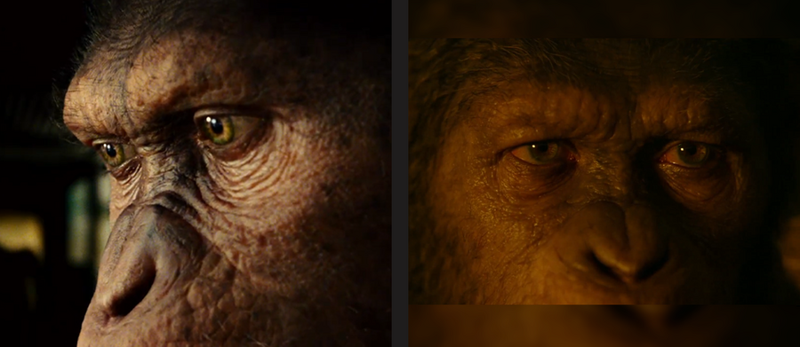 Гипотеза: Развитие технологий визуальных эффектов в рамках франшизы позволило добиться внушительного уровня реалистичности и детализации цифровых персонажей. При этом с каждым новым фильмом прогресс становится менее заметным «на первый взгляд», смещаясь с решения фундаментальных задач (например, «заставить шерсть выглядеть правдоподобно») к достижению тонкого, почти незаметного художественного совершенства, такого как передача микроэкспрессий и интеграция с сложными погодными условиями.
