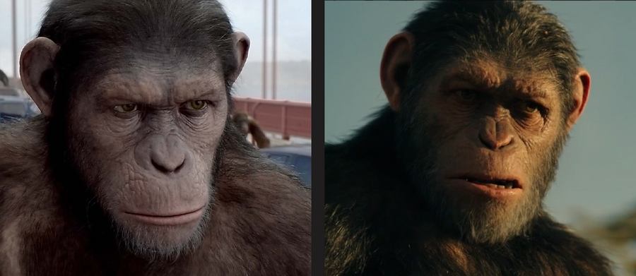 Модель Цезаря была модифицирована, было добавлено больше морщин и пигментных пятен на лице, шерсть сделали слегка седой вокруг морды. Протагонист повзрослел с момента прошлого фильма. Был переделан материал глаз Цезаря.